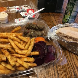 I stopped by this location for lunch. The french fries were definitely the highlight for me. I also ordered the chicken shawarma sandwich which had a great authentic Mediterranean taste. It's rather small on the inside, but overall I'd say it's worth checking out if you're in the area. It maybe wasn't my favorite place I've been to, but for a $10 sandwich it really was an okay value. The staff was also friendly.